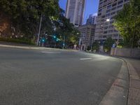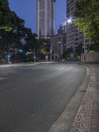 Aerial view of a bustling city at night, with tall high-rise buildings and illuminated street lights