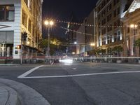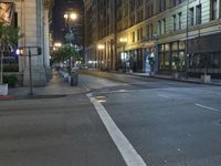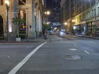 A view of the downtown area of Los Angeles, California, USA, featuring classic architecture, a mixture of residential and commercial properties, and a variety of infrastructure and transport routes illuminated by artificial lights.