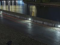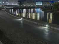 A stunning view of the modern architecture and city lights of Berlin at night, with a reflection on the water