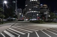 A stunning view of a metropolitan area at night, featuring modern architecture and a bustling business district.