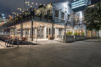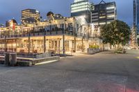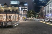 Nighttime Cityscape with Skyscrapers and Street Lights
