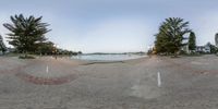 A serene nighttime coastal landscape with a pier stretching out into the water, illuminated by street lights. The dark sky is filled with clouds, and the clear sky reflects on the calm ocean surface.