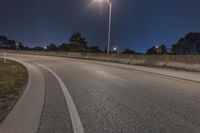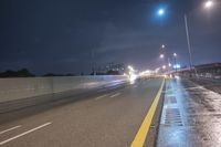 A straight road illuminated by street lights and car headlights, leading through the urban landscape of Miami, Florida, USA.