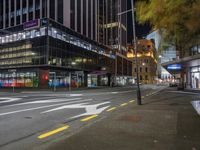 A bustling city at night, with modern architecture and city lights illuminating the streets.