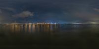 The city of Shenzhen, located in Guangdong, China, is illuminated by artificial light, beautifully reflecting off the coastal water in this nighttime cityscape.