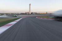 The sun rises over the horizon as a single automobile races down a winding road, the curving asphalt stretching out in front of it in a grand S-curve. A fixed link stretches out from the land to the sea, a structure of infrastructure that provides the perfect mode of transport. Sand and water meet in the distance, a grandstand and stadium providing a clear view of the race track below.