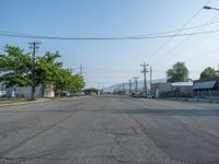 A road is seen stretching straight down the asphalt in Salt Lake City, Utah, USA on a clear day.
