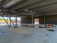 A view of a construction site in the city, with open space and a cloudy day sky.