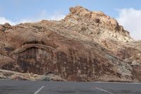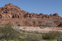 A scenic drive on a dirt road in Nevada, USA, showcases the rugged beauty of the desert landscape and majestic mountain landforms. The open space and clear sky offer a perfect day for exploring nature off-road. The rocky outcrops and red rock formations add to the geology of the southwest region, while the gravel surface leads through the badlands and showcases the profile of the rock walls. This photo captures the beauty of the Nevada wilderness in a stunning landscape.