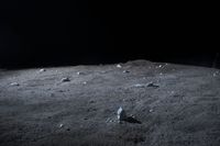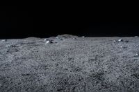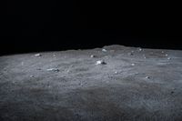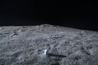 A rugged dirt road winds through a remote landscape underneath a clear night sky, traversing the moon's surface and leading off into the universe.