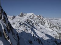 A stunning landscape of the Chamonix Valley in the French Alps, showcasing majestic mountains, snow-covered peaks, and a clear blue sky.