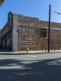 A peaceful dawn reveals a street lined with brick houses and lined with trees in a residential neighborhood in Los Angeles, California, USA. A motor vehicle can be seen in the foreground, parked in front of a property with a brick facade. Other features of the urban design include a tar-covered road surface, street light, fire hydrant, wheel, window, and gas line.