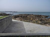 Perched high above Porto, Portugal, this aerial view captures the coastal beauty of Europe's westernmost country. The concrete structures cast long shadows under the clear sky, contrasting with the ocean's vast expanse. The elevated position offers a unique perspective of the gloomy yet captivating grey sky, creating a dramatic scene along the coastline. From top-down views to hard shadows, the open spaces and high positions showcase the surface of this stunning water-adjacent city.