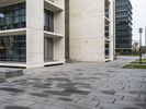 A view of Lisbon, Portugal from a high-rise showing the city's modern architecture, urban design, and residential areas. Grey asphalt roads lead to the business district with paver flooring and buildings with wood fixtures, rectangles windows and composite material facades, while trees and flowers provide shade in public spaces and open areas.