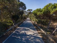 Experience Portugal's road infrastructure from a high position with aerial views capturing Armco barriers lining the asphalt. The clear sky enhances the elevated perspective, offering a straight down the road view of Europe's picturesque landscapes. The seamless blend of the barrier and the natural beauty of Portugal is best appreciated from this top-down vantage point, showcasing the country's commitment to road safety and visual appeal.