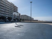 Nestled along Porto's coastal area in Portugal, modern architecture blends with traditional residential areas. The sunny sky illuminates the open spaces, offering a clear view of the ocean. Urban design features incorporate basketball courts and beachfront properties, creating a vibrant atmosphere. The coastline showcases a mix of contemporary and classic European architecture, with the sun shining brightly over the city's beautiful waterfront.