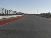 A race car zips down a highway, its drivers focused on the road surface and the infrastructure ahead. Clear skies stretch over the asphalt and lane structure, suggesting a perfect day for a race.