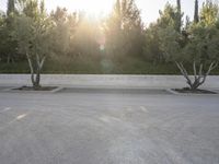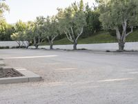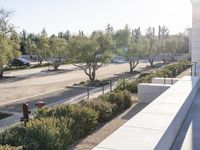 A view of a residential area in Los Angeles, California, USA. The image showcases the architecture of houses, roads, and parking lots surrounded by lush green vegetation and trees. The clear sky and sunlight add to the vibrant landscape.