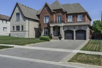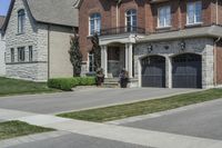 A beautiful residential area in Toronto, Canada, with houses and buildings made of concrete and brick walls. The clear sky adds to the tranquil atmosphere of the neighborhood.