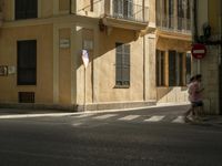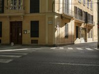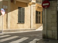 A yellow facade of a residential building in Mallorca, Spain. The architecture reflects the urban infrastructure in this beautiful town in the Balearic Islands of Europe.