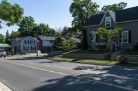 A beautiful suburban house with a clear sky and hard shadows on the asphalt surface in Toronto, Canada.