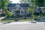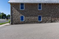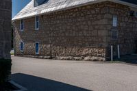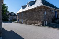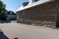 A straight down the road view of a residential house driveway in Toronto, Canada with a clear sky and hard shadows on the asphalt surface.
