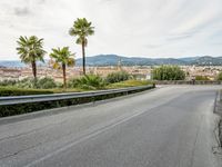 The winding asphalt road leads through the Tuscan landscape, straight down the road to the city of Florence in Italy, Europe. Nature and cityscape blend together in this tranquil day view.