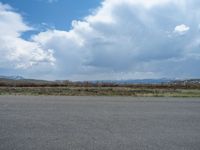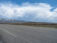 In the rural landscapes of Utah, a straight road stretches into the distance, surrounded by majestic mountains and vast open skies. The asphalt road cuts through the picturesque scenery, offering a profile view of the stunning natural beauty. Clouds drift lazily overhead, adding to the serene atmosphere. This road, known as 1/4角, showcases the unique and breathtaking landscapes that the USA has to offer. It's a perfect location for those seeking to immerse themselves in the beauty of nature.