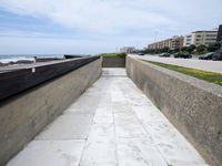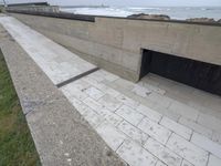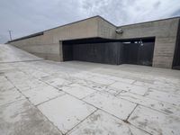 A view of the modern architecture of the business district of Porto, Portugal, with its concrete road, water, asphalt, walkway, fixed links, boardwalks, villas, breakwaters, office buildings, and futuristic elevated buildings of high profile, with stone walls, composite materials, floors, windows, and pavers, creating an open space and a property facade with a structure and line for real estate.