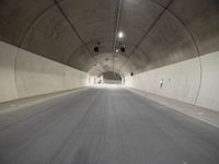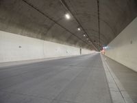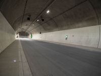 A one quarter angle view of a concrete and asphalt road with a tunnel wall in the background in Europe, Germany.