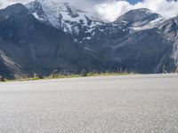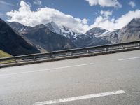 The winding asphalt road of Austria, surrounded by nature and open space, stretching to the horizon beneath a clear blue sky. A profile view of an Armco barrier along the side of the road emphasizes the vastness of the landscape.