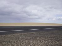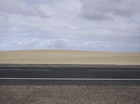 A scenic road stretches along the coastal landscape of Spain, with asphalt and grey sky in the background. The road leads to the beautiful beach where the sand dunes and the ocean meet, creating a picturesque view of nature and architecture. This road trip captures the essence of Spain's natural environment and open spaces, offering a perfect escape for adventure seekers and nature enthusiasts. Discover the stunning beauty of Fuerteventura, a highland plain adorned with yellow sand and tree-lined horizons, making it an ideal destination for exploring the diverse landscapes and infrastructure of Europe.