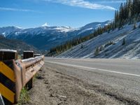In the scenic landscapes of Colorado, a road winds through a snow-covered forest, with majestic mountains as the backdrop. The asphalt road cuts through the serene winter scene, inviting travelers to explore the natural beauty of the area. Snow-capped trees and a clear blue sky create a picturesque foreground, while fluffy clouds add a touch of drama to the landscape. This stunning scenery captures the essence of Colorado's natural wonders, making it a perfect destination for nature lovers and adventure seekers.