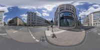 A modern German cityscape featuring a mix of classic and modern architecture, infrastructure, and public spaces, along with vehicles navigating the asphalt roads.