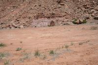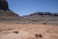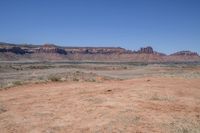 Scenic view of a brown bedrock terrain formation with red rock outcrops and a clear sky in Canyonlands, Utah, USA