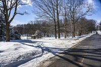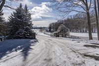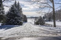 Scenic view of a rural landscape in Ontario, Canada, with a winding road, lush vegetation, and a charming house nestled among trees.