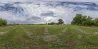 A grey sky overlooks a rural road and farm property near Bancroft, Iowa, USA. The scene includes a track, open space, pasture, grass surface, trees, vegetation, and a shed, providing a picturesque land lot for agriculture and off road activities.