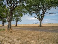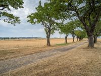 In the rural landscapes of Germany, straight roads cut through fields and agricultural fields under the European sky. Gravel and dirt streets wind through the countryside, offering a glimpse into nature's beauty. Clouds drift lazily overhead, casting shadows on the sandy and gravel roads. This picturesque scene captures the essence of rural Europe on a peaceful day.