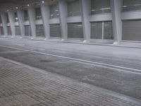 A modern concrete bridge with an S-curve design in Valencia, Spain. The bridge is made of composite materials with a metal handrail and a concrete floor. Artificial lights illuminate the bridge at night and the shadows of the iron guard rails can be seen on the cobble stone road below.