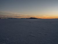 The clear night sky illuminates the Bonneville Speedway in Salt Lake City, Utah, with a desert landscape and salt surface, surrounded by mountains and sand. The contrails of a distant aircraft offer a fleeting reminder of the vastness of the USA.