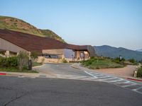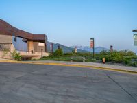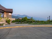 The road leading to a museum in Salt Lake City, Utah, USA stands out against a clear sky at the break of day.