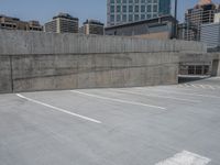 A concrete street and parking deck in Salt Lake City, Utah, USA on a cloud-filled day.