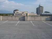 Experience the vibrant city life of Salt Lake City, Utah. Modern architecture and sleek concrete streets define the urban landscape. Take a stroll down the city roads, lined with parking garages and decks. The cityscape is framed by clouds, adding a touch of drama to the scene. Salt Lake City's urban design is a perfect blend of contemporary style and functionality. Discover the profile of the city as you walk straight down the road, immersing yourself in the energy and atmosphere of this bustling metropolis.