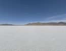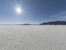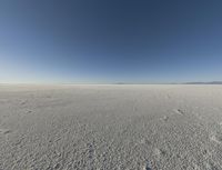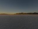 The freezing winter night in Utah, USA, illuminated the snow-covered Aeolian landforms of Bonneville Speedway, while the azure sky and calm waters of the Salt Lake Reservoir brought a sense of peace to the horizon.