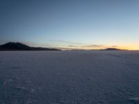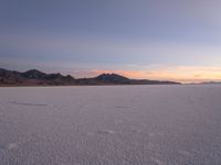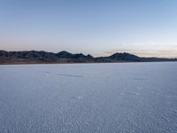 The dark desert of Bonneville Speedway in Salt Lake City, USA, is illuminated by the early morning light and the contrails of a passing airplane. The open space and salt surface create a unique natural landscape against the clear sky and the distant mountains.