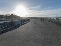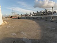 A profile of the coastal city of San Francisco, USA, with an urban skyline, pier, jetty, and open space, illuminated by the sunshine and clear sky of a beautiful day.