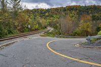 A picturesque road surrounded by lush vegetation and colorful autumn leaves in the highland.