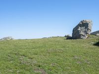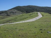 A beautiful day in California, USA as we drive along a low road in the stunning landscape, surrounded by lush green grass and vast open spaces. The mountains tower above us, showcasing the breathtaking beauty of nature. This off-road track takes us through grassy surfaces and hills, passing by picturesque pastures and plains. The rocks add texture to the landscape, while the clear sky above and elevated highlands create a sense of serenity. Enjoy the rural scenery with abundant vegetation and untouched wilderness in this natural environment. The asphalt road curves through high mountains, fell cliffs, and mountain passes, offering scenic views at every turn. As we drive uphill, the slopes reveal beautiful prairies, land lots, and steppe-like terrain. The outcrops further highlight the geological features of this captivating region.