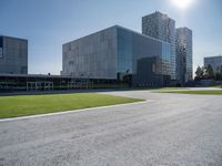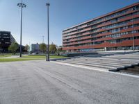 The busy cityscape of the Netherlands, with its modern architecture, skyscrapers, and residential buildings, is illuminated by the early morning sun and clear sky.