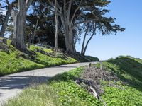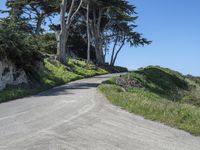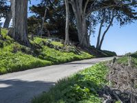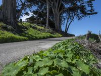 A beautiful coastal road with lush green vegetation and a clear sky in California, USA